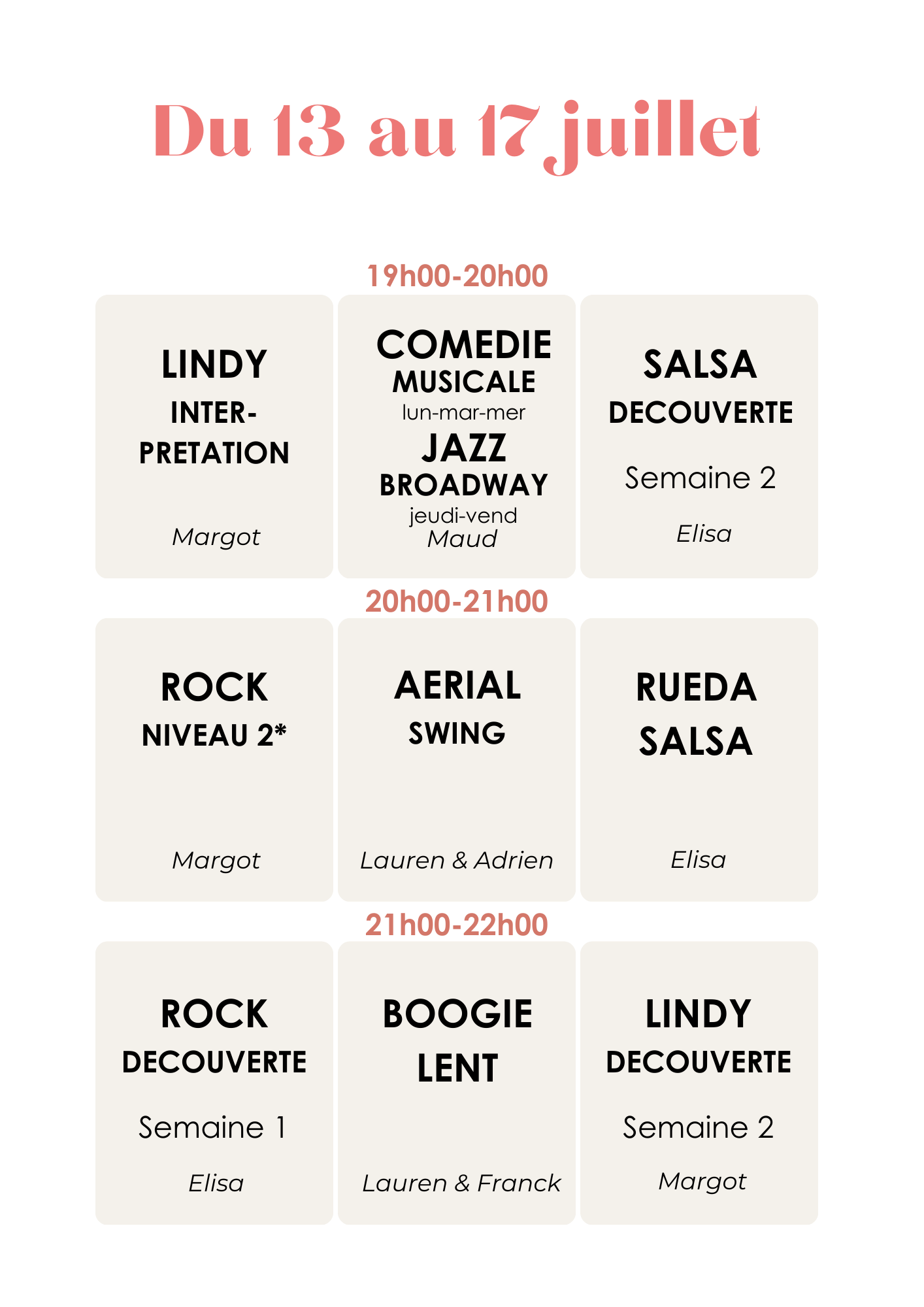 Ballet Rock N’Swing : Venez vous challenger sur un enchainement en couple et en formation, et vivre la magie d’une réalisation de chorégraphie pour la scène. Niveau de danse requis : 1 an minimum.